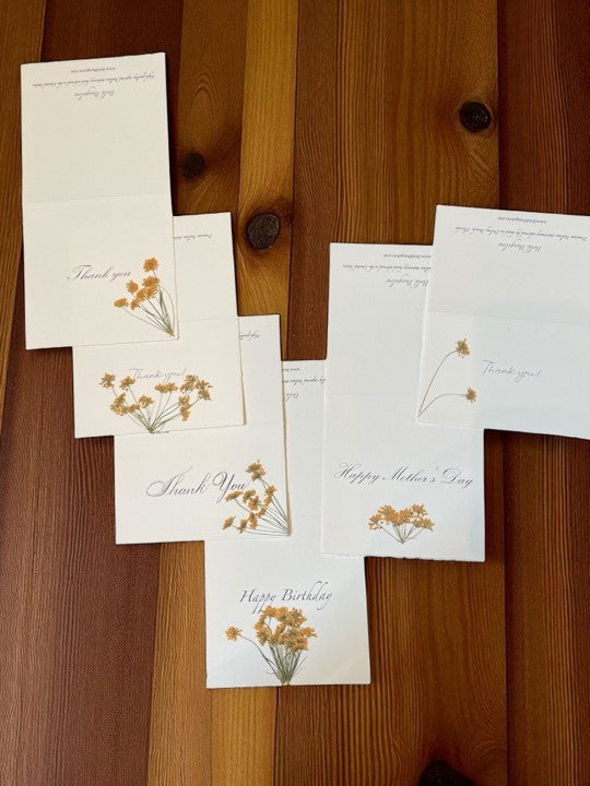 Our greeting cards are created on premium Italian stationery and thoughtfully adorned with real dried flowers—each one a little different, just like the person receiving it. Whether you're lighting a candle or sending a note, you're choosing something personal, safe, and made with love.