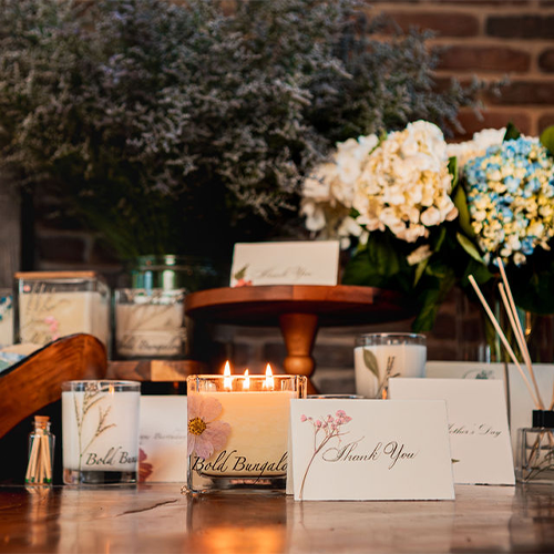 Bold Bungalow started with a single handmade card. What began as a creative outlet grew into pressed-flower stationery and, later, natural candles - pieces made by hand to give, keep, and enjoy. We still craft everything in small batches in Delray Beach, using materials we trust. Visit our Test of Time page to see originals that have aged beautifully.