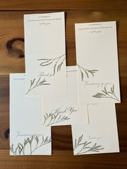 Elevate your correspondence with Caspia notecards, featuring delicate Caspia flower accents that bring a light, airy touch to every message. Crafted with thoughtful attention and high-quality materials, these notecards offer a refined space to express your sentiments with subtle elegance. Perfect for those who appreciate understated beauty and sophistication in stationery.